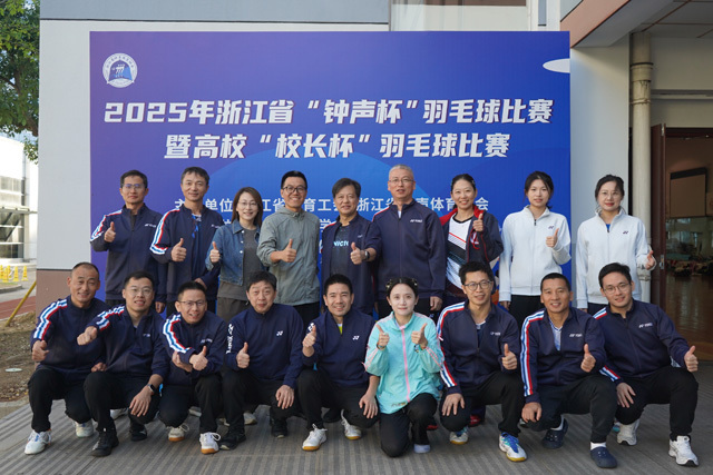 2025年浙江省“钟声杯”羽毛球比赛暨高校“校长杯”羽毛球比赛11月22日——25日在温州医科大学成功举办。我校教工代表队由校领导陈光亭、王建军带队参加。